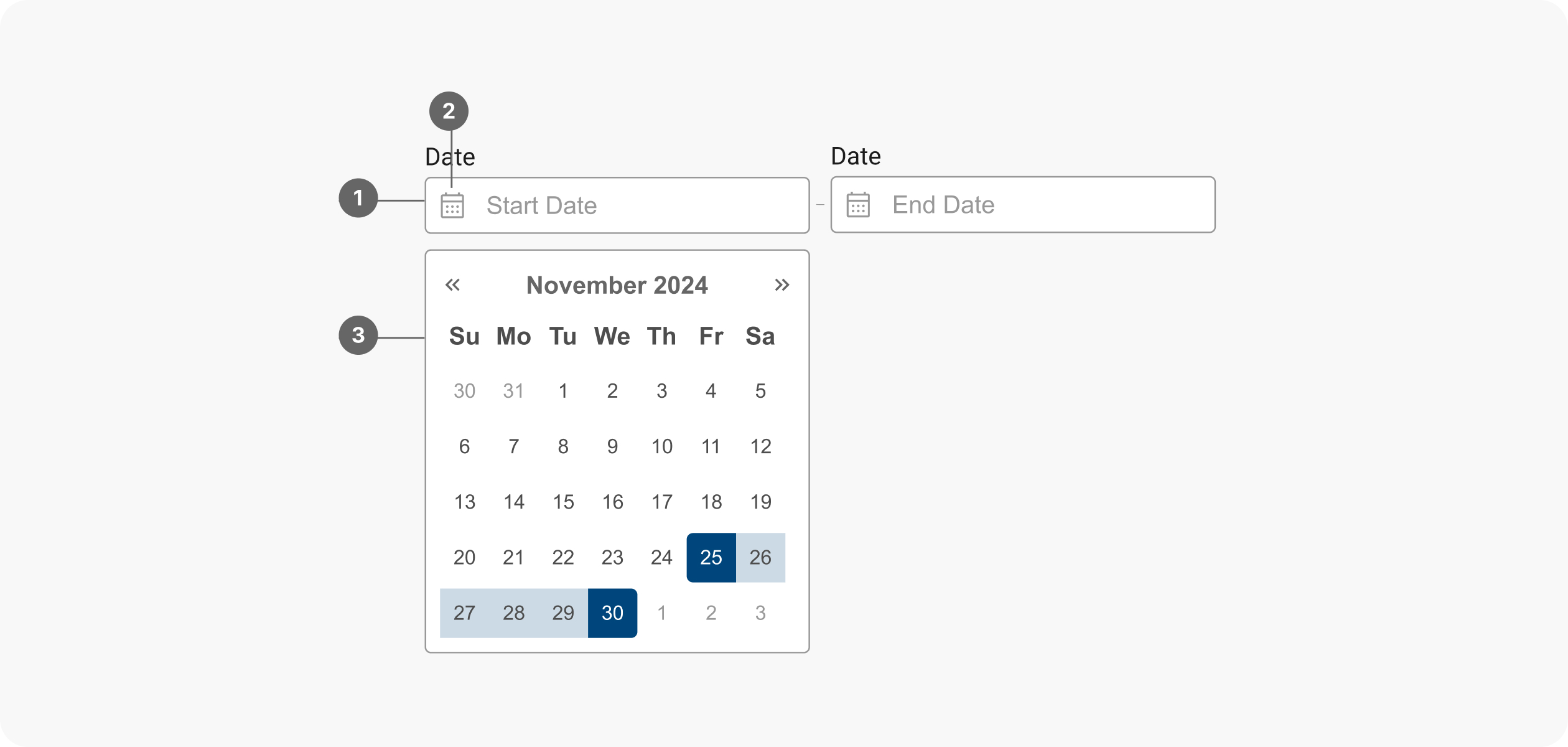 - 標籤:提供明確的標籤說明日期選擇器的用途。
