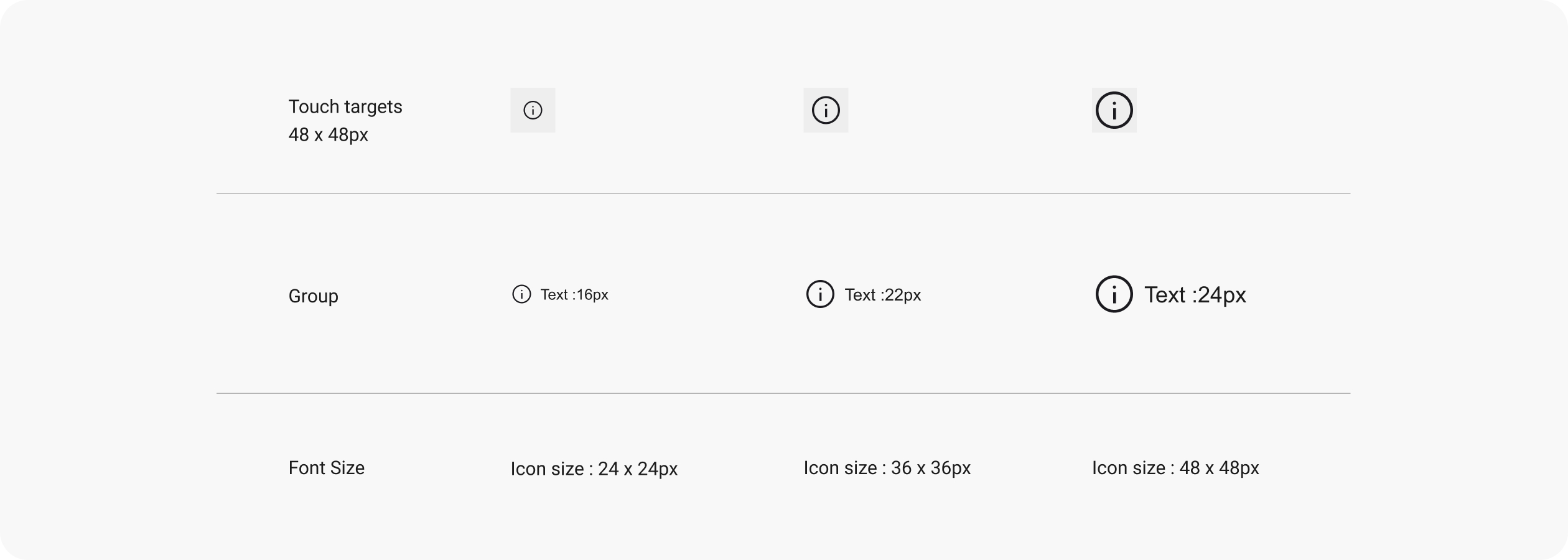 - 對齊方式:當圖示位於文字旁邊時,將圖示置中對齊,不要對齊基線(Baseline)。
