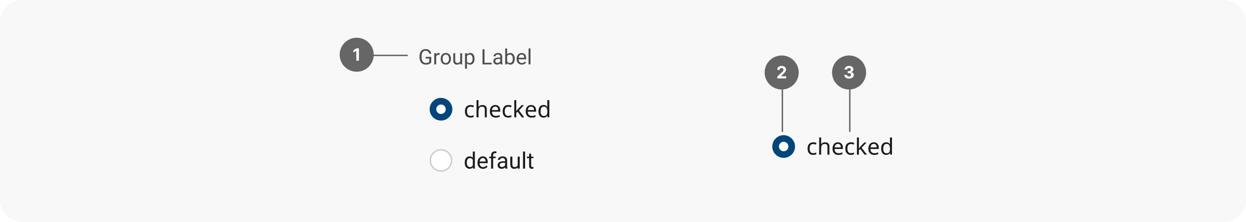 單選按鈕標籤位於其輸入的右側,採用從左到右閱讀的語言。如果有單選按鈕分組,則可以根據用例和 UI